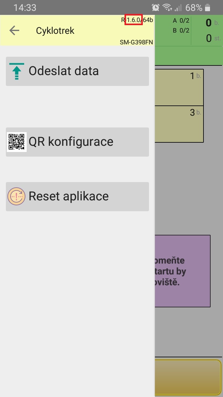 Během Cyklotreku není potřeba mobilní signál ani datové připojení, pouze po projetí cílem je zapotřebí připojení k internetu, aby mohly být odeslány výsledky. Pokud zařízení nemá k dispozici data, proveďte odeslání později "ručně", až zařízení bude k internetu připojeno. Jestliže chcete, kdykoli můžete již nasbíraná data odeslat příkazem v menu (tři tečky vlevo nahoře, pak Odeslat data), např. před tím, než půjdete utopit telefon na nějakém mokrém stanovišti :-)